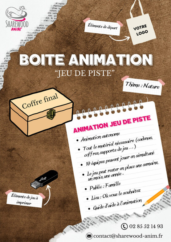 Pour votre collectivité, offices du tourisme, lieux touristiques… nous proposons une boîte d’animation clé en main. Cette boîte vous permettra de mettre en place un véritable jeu de piste sur le lieu de votre choix, intérieur ou extérieur.