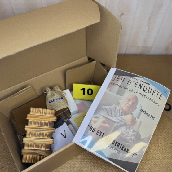 Ce kit ne peut être commandé que par des établissements de type SAD. À la commande, vous recevez un formulaire à nous renvoyer pour que nous puissions identifier votre établissement. Vous recevez ensuite la boîte de jeu par voie postale.